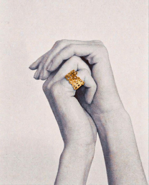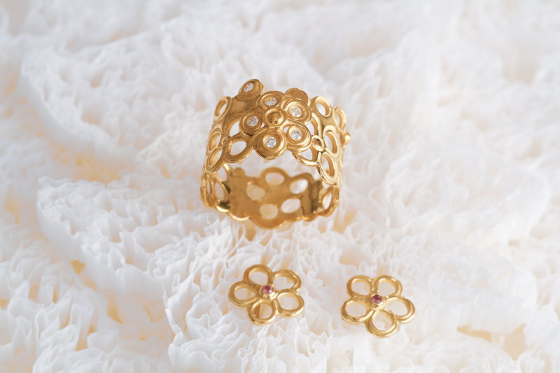 Ce bijou est aérien, comme une seconde peau, travaillé tout en transparence et serti de diamants offrant un bel éclat à l’ensemble du bijou.